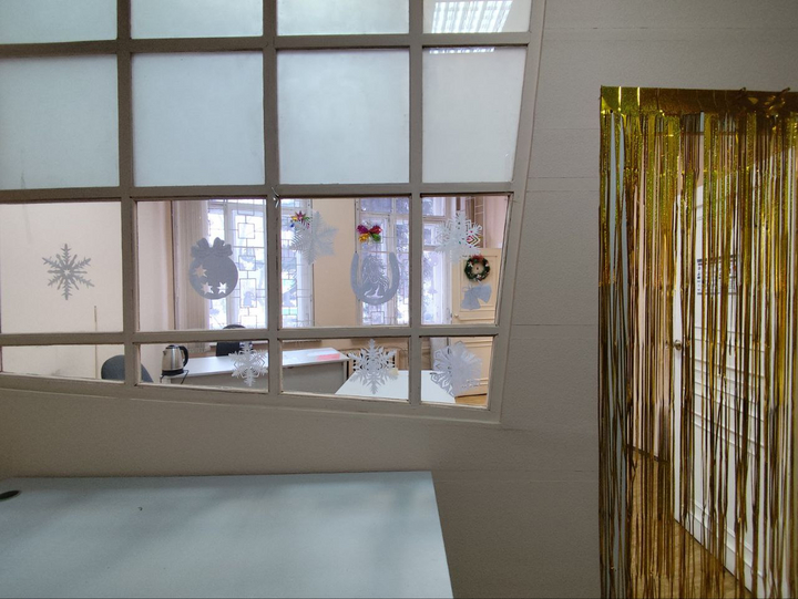 Студенты групп 1101 (классный руководитель С.В.Гришина), 1302 (классный руководитель Е.В.Вахлиш), 9371 и 9472 (классный руководитель Е.Б. Боева) украсили окна и кабинеты к Новому году.