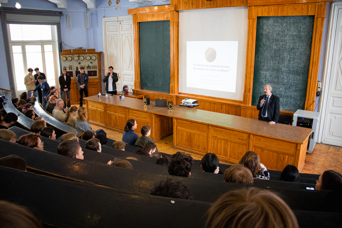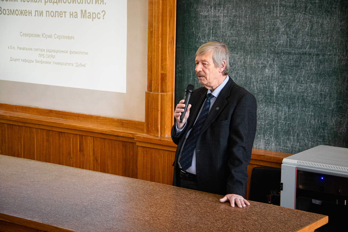 Начальник сектора радиационной физиологии Объединённого института ядерных исследований (Дубна) Ю.С. Северюхин на лекции «Космическая радиобиология. Возможен ли полет на Марс?» объяснил, что такое космическая радиация и как она влияет на организм человека в полёте.