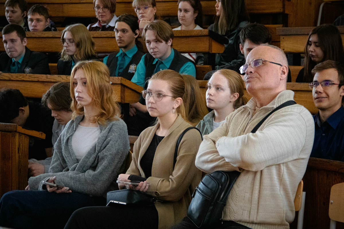 В III корпусе к собравшимся на фестиваль старшеклассникам обратился директор Института физики С.Б. Вениг. Сергей Борисович рассказал об исторической значимости Большой физической аудитории – в ней на разных этапах истории присутствовало 6 Нобелевских лауреатов.