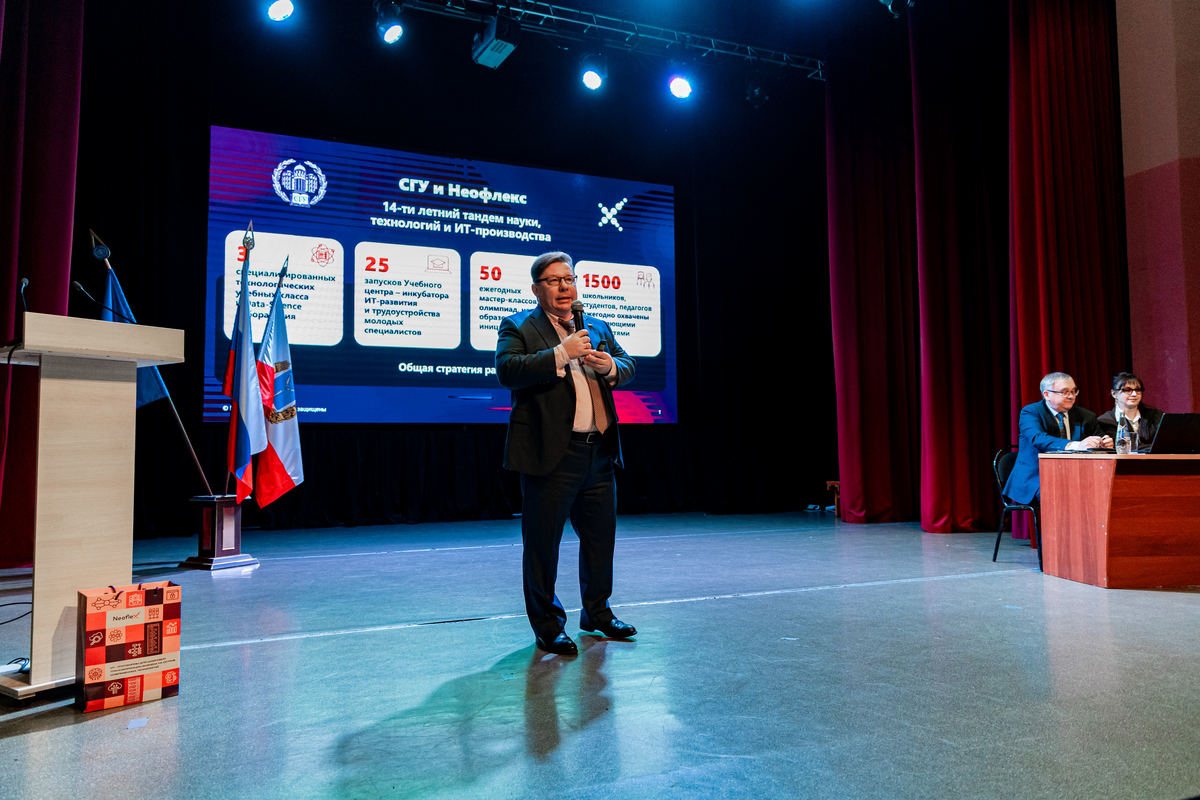 Представитель предприятия – индустриального партнёра СГУ, руководитель службы развития персонала компании Неофлекс, директор саратовского филиала Р.Б. Родионов отметил, что сотрудничество ИТ-компании Неофлекс с Саратовским университетом длится уже более 14 лет, с момента создания первого филиала компании в Саратове. Роман Борисович считает, что благодаря постоянной поддержке ректора выстроены доверительные отношения: