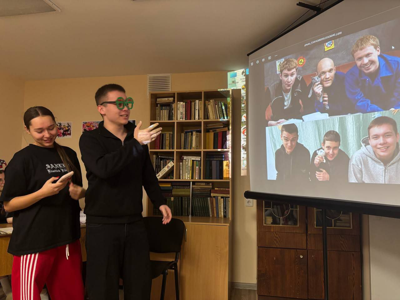 Мероприятие, с целью создания позитивной атмосферы, развития творческих и коммуникативных способностей студентов, организовала воспитатель геологического колледжа О.А. Скрипник вместе со студентами: Медведевой Надеждой, Щегловой Алиной, Киреевой Ариной.