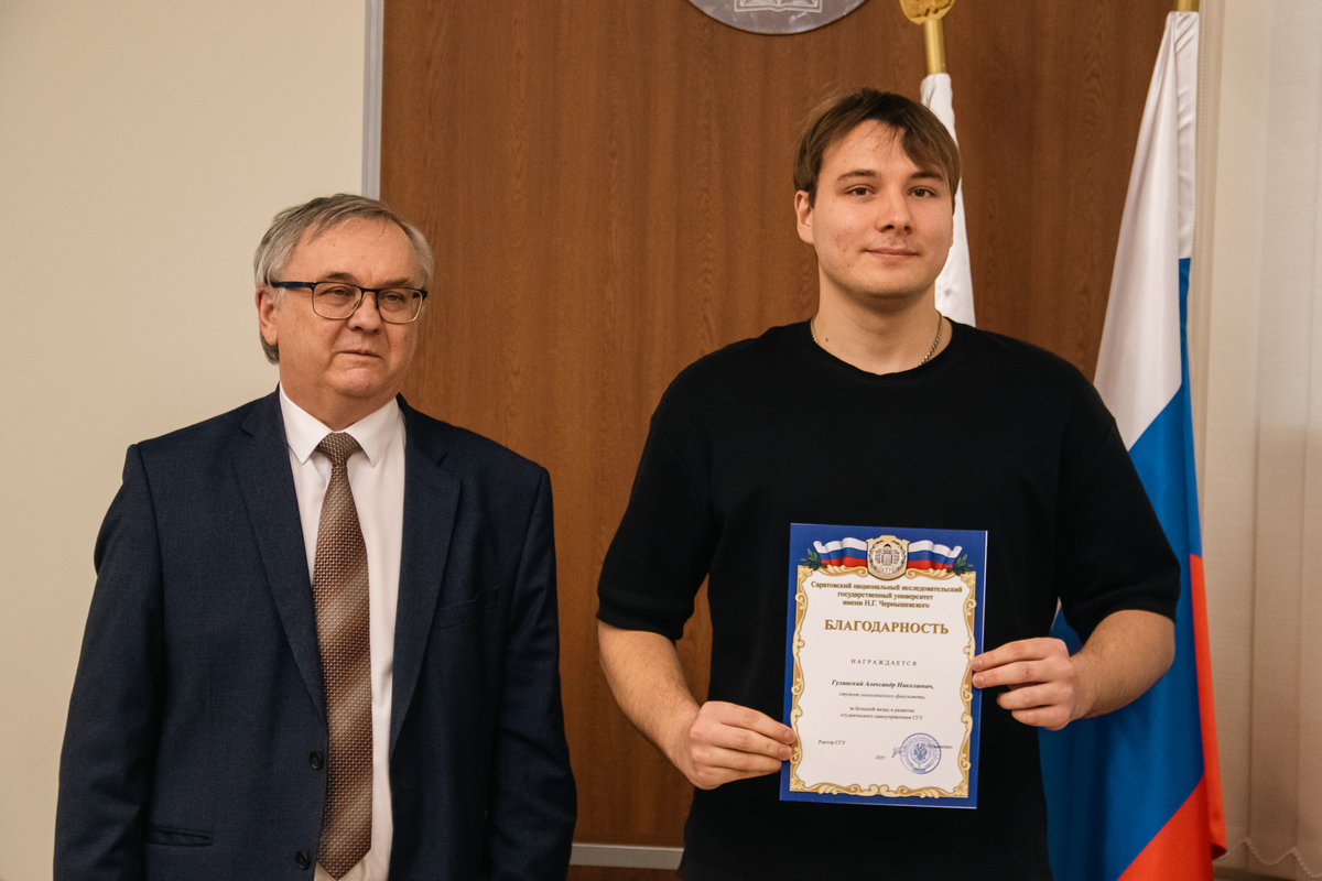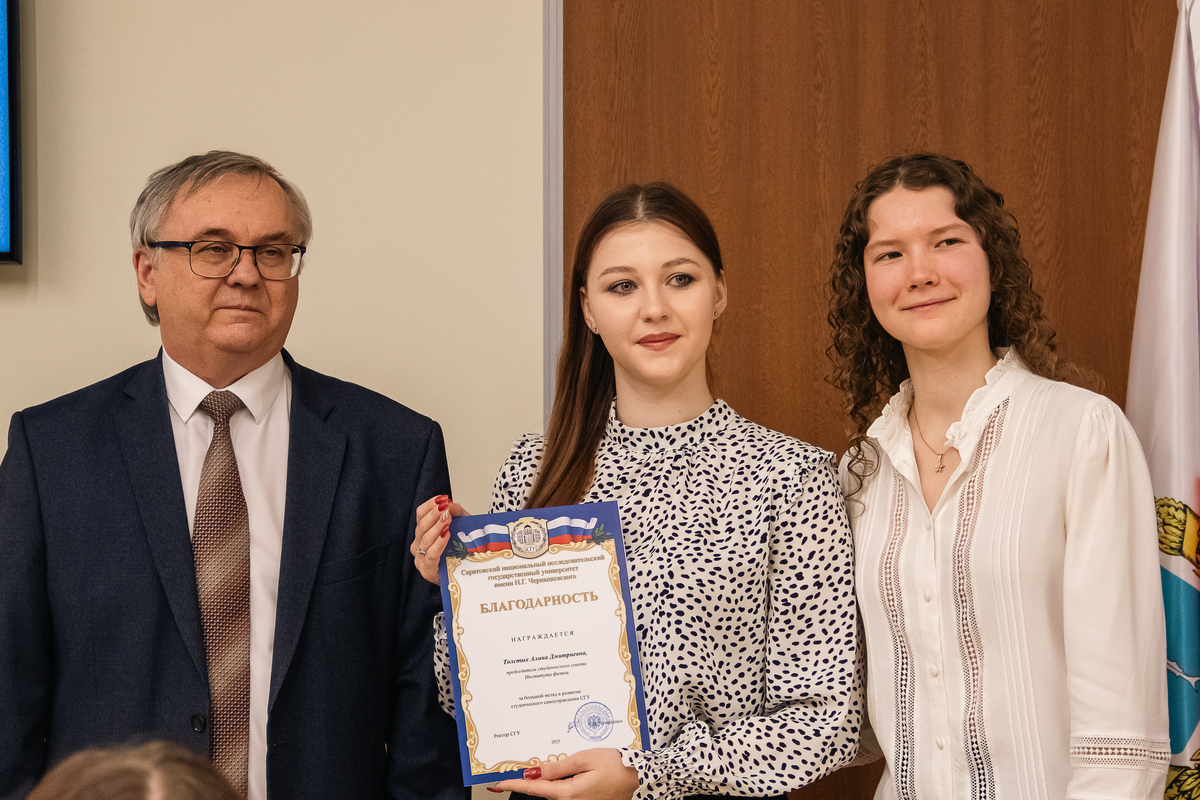 За большой вклад в развитие студенческого самоуправления СГУ А.Н. Чумаченко отметил благодарностями отличившихся председателей студенческих советов. Среди них:
