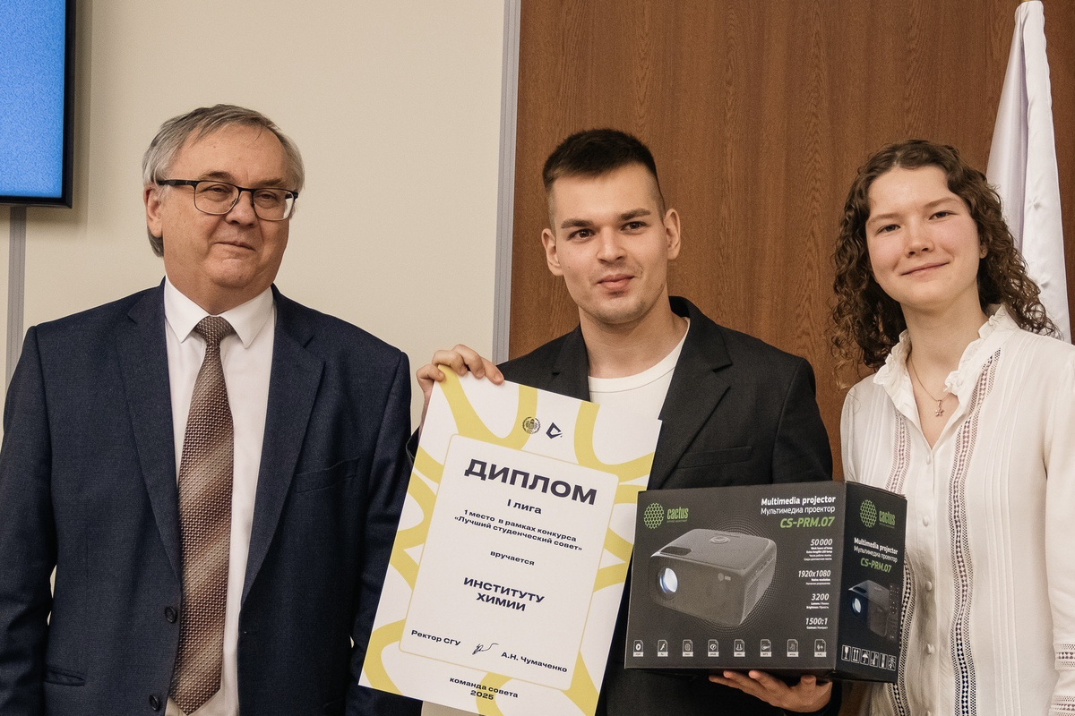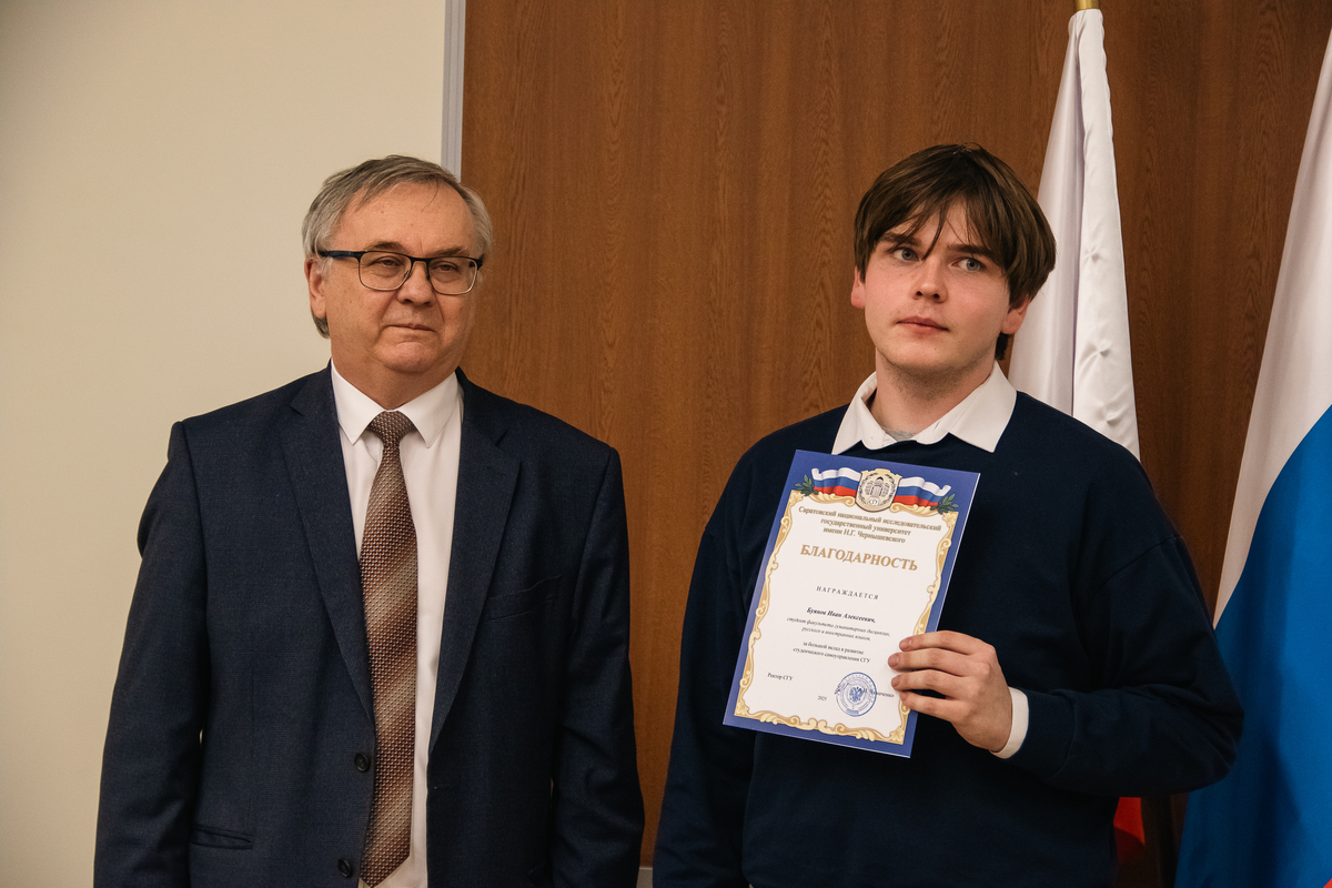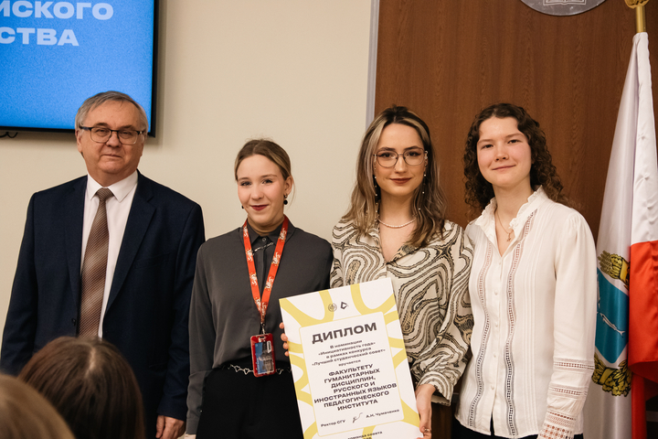 Торжественное награждение провели ректор А.Н. Чумаченко и председатель Совета студентов и аспирантов СГУ Кира Макаричева.
