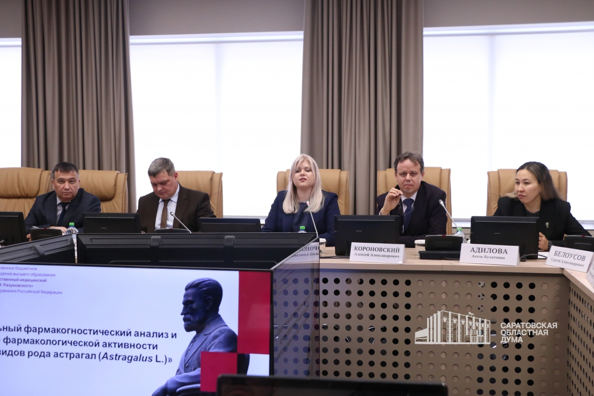 Депутаты Саратовской областной Думы встретились с молодыми учёными региона. Саратовский университет представляли проректор по научной работе и цифровому развитию А.А. Короновский, заместитель директора Института физики по учебной работе А.Б. Адилова.