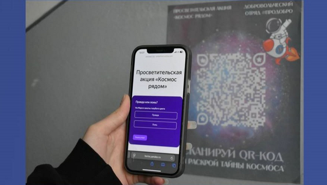 Акция прошла в главном корпусе института – в местах с высокой проходимостью, что обеспечило максимальный охват участников. Волонтёры разместили тематические постеры, содержащие QR-коды, ведущие к специальной онлайн-подборке любопытных данных о современных исследованиях в космической области. После ознакомления с материалами участники могли сразу проверить свои знания в интерактивном мини-тесте формата «правда или ложь». Вопросы были составлены так, чтобы не только выявить уровень осведомлённости, но и развеять распространенные мифы о космосе.
