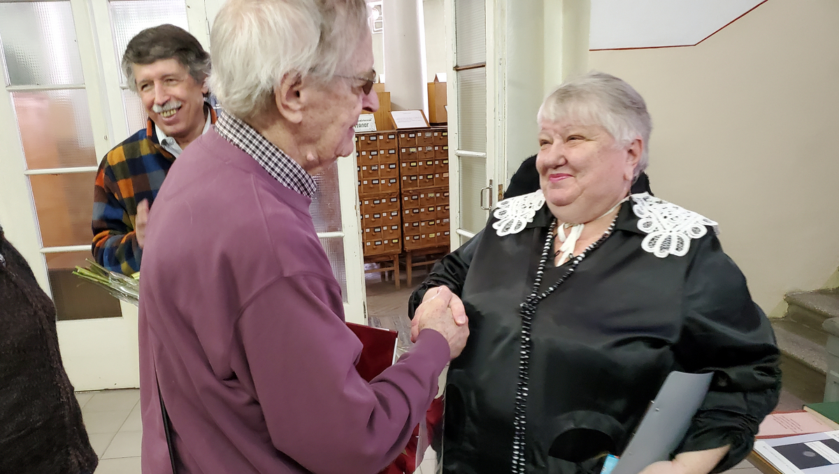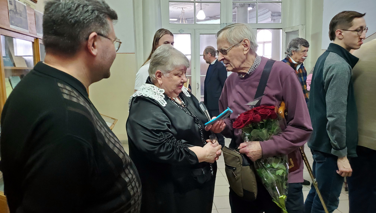 Василий Фёдорович выразил благодарность всем присутствовавшим, пообщался со своими бывшими студентами, с сотрудниками научной библиотеки, которых он очень любит и которые уважают его.