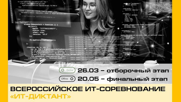 Открыт приём заявок на участие во Всероссийском соревновании «ИТ-диктант». Всем желающим необходимо зарегистрироваться по ссылке.