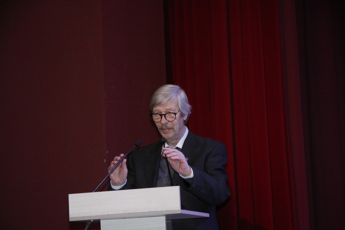 Декан географического факультета В.З. Макаров выступил с отчётом о работе факультета за 2021–2025 годы. В докладе декана дана характеристика учебной, научной деятельности факультета за истекшее пятилетие. На слайдах были представлены показатели успеваемости студентов за разные годы, показаны цифры публикационной активности преподавателей и студентов, их участие в научных конференциях и семинарах. За отчётный период было опубликовано 6 монографий и более 370 статей по разным проблемам современной географии. В.З. Макаров особо подчеркнул не только научную, но и практическую ценность работ, выполненных по грантовым, хоздоговорным темам и госзаданию. В докладе также была отражена воспитательная работа со студентами, школьниками города и области, рассмотрены направления социальной работы факультета.