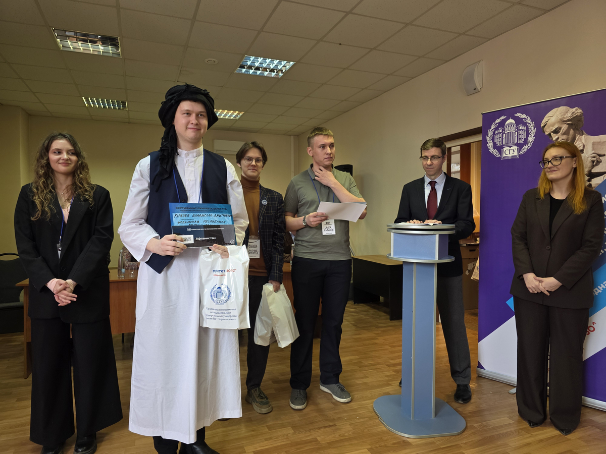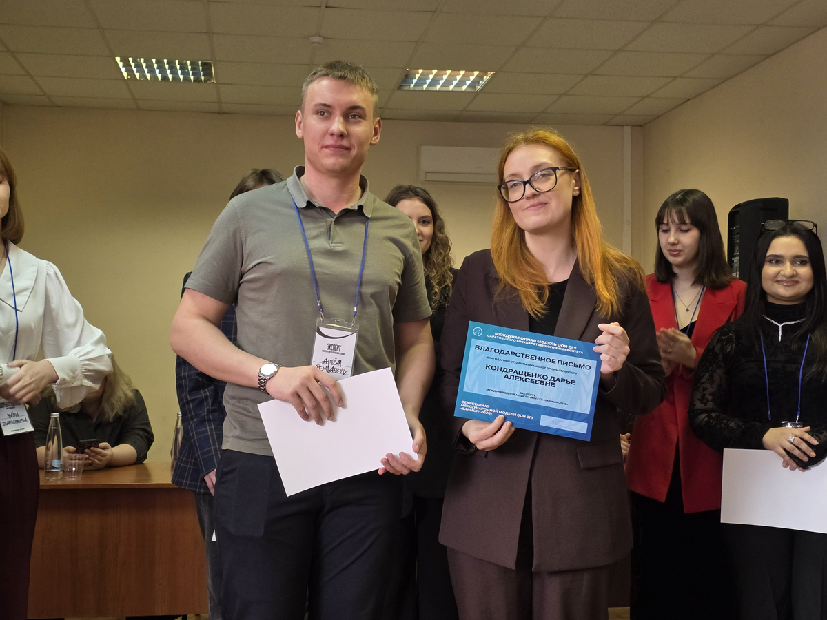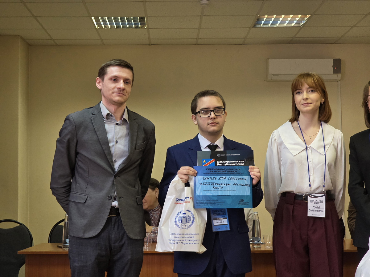 Перед награждением участников Совета Безопасности эксперт комитета Д.С. Алексеев, доцент кафедры международных отношений и внешней политики России ИИиМО СГУ, отметил готовность участников комитета к профессиональному диалогу, их плодотворную работу, итогом которой стала качественная и конструктивная резолюция.