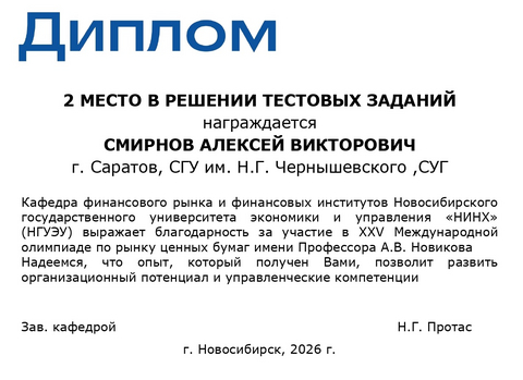 Студент СГУ Смирнов Алексей - призер международной олимпиады