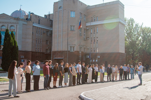 В университетском кампусе напротив бюста Н.Г. Чернышевского состоялось торжественное мероприятие.