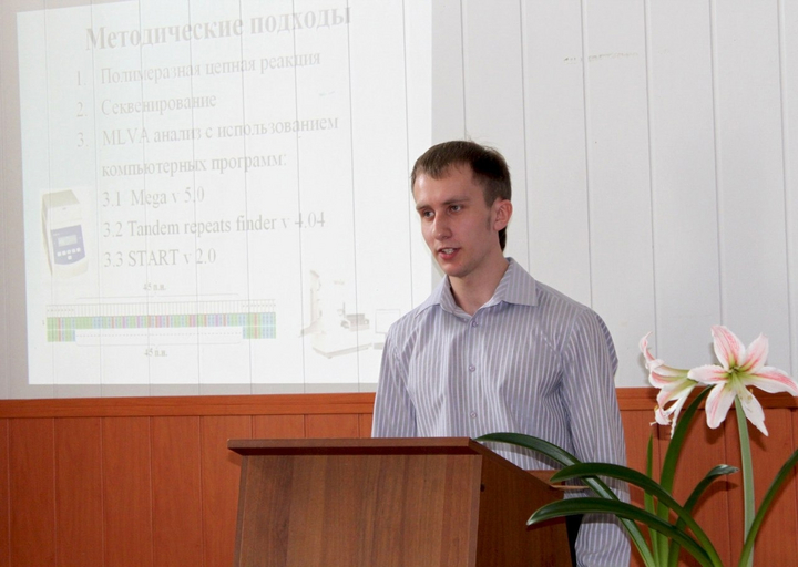 «Мой путь в большую науку начался в 2009 г., когда пришло время выбирать кафедру для специализации на факультете. В итоге выбор был сделан в пользу кафедры биохимии и биофизики, во многом благодаря тому, что на кафедре активно развивалось направление молекулярной генетики, читали спецкурсы, позволявшие получить практические навыки в этой сфере, а также работали высококвалифицированные преподаватели – действующие учёные, под руководством профессора Конновой С.А. В том же году мне выпала возможность проходить стажировку и производственную практику в Федеральном казенном учреждении здравоохранения Российском научно-исследовательском противочумном институте «Микроб», на базе которого в дальнейшем были выполнены экспериментальные работы в рамках дипломной работы.