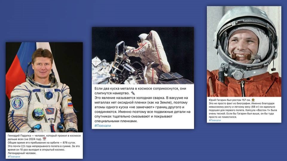 Размещенные материалы отличались информативностью, содержательностью и доступной подачей. Публикации были рассчитаны на широкую аудиторию и позволили по-новому взглянуть на события, связанные с освоением космического пространства. Многие участники акции смогли открыть для себя новые и неочевидные факты, расширить кругозор и еще раз убедиться в том, насколько значим вклад нашей страны в историю мировой космонавтики.
