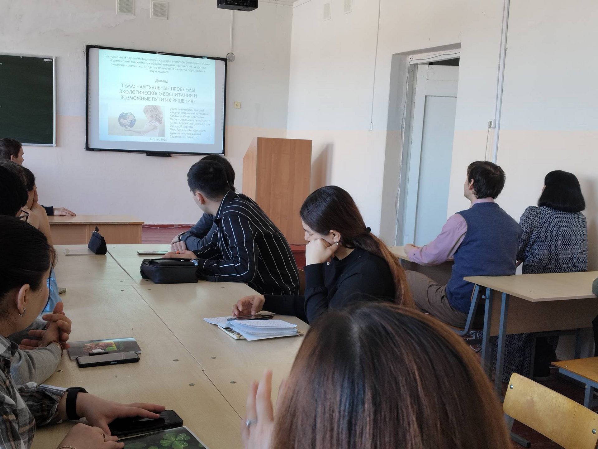 После работы секций учителя школ г. Балашова провели серию мастер-классов по использованию современных технологий на уроках биологии и химии. В режиме видео-конференции свой мастер-класс представила выпускница БИ СГУ, а в настоящее время, учитель биологии МАОУ «Образовательный центр имени Героя Советского Союза Расковой Марины Михайловны» Энгельского муниципального района Саратовской области Ю. С. Кабанина. Юлия Сергеевна поделилась методами и приемами работы с детьми с ОВЗ на уроках биологии. Выпускница БИ СГУ А. А. Кертанова, учитель биологии «МАОУ «СОШ №18 с углубленным изучением предметов им. О. П. Табакова» г. Саратова, осветила экологический аспект уроков биологии. Данный вопрос является очень актуальным в настоящее время, так как масштаб экологических проблем продолжает расти.