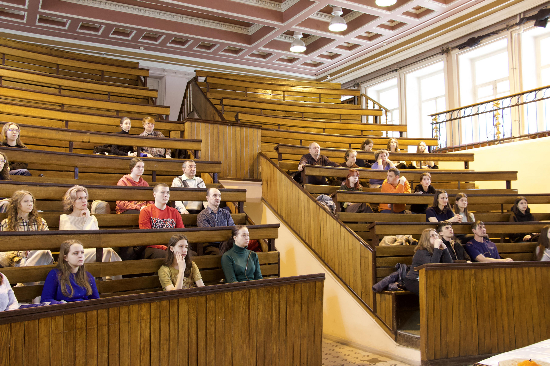 В нижней аудитории 1 корпуса – здания с более чем вековой историей – абитуриентов встречали руководство, ответственные лица, сотрудники и студенты института. С приветственным словом выступил директор Ушаков А.В.. Преподаватели и студенты рассказали об истории и сегодняшней жизни Института химии, направлениях подготовки и дополнительных образовательных программах, учебной и научной деятельности, практических подготовках (практиках) и экскурсиях на профильных объектах Саратовской области, материально-технической базе, социальной и воспитательной работе, перспективах трудоустройства, особенностях приёма в 2026 году. У родителей и будущих абитуриентов была возможно задать интересующие вопросы в индивидуальном порядке.