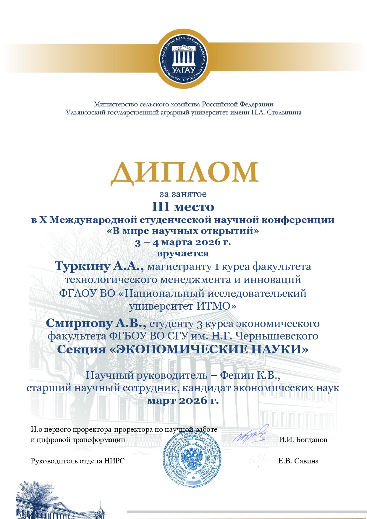 3-4 марта на базе Ульяновского государственного агарного университета имени П.А. Столыпина состоялась X Международная студенческая научная конференция «В мире научных открытий»