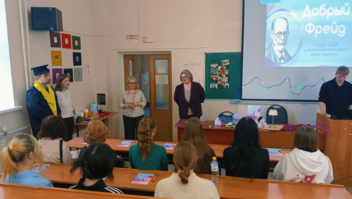 21 марта на факультете психологии СГУ состоялось торжественное открытие нового набора слушателей школы юного психолога "Добрый Фрейд". С приветственным словом перед слушателями школы выступила зам декана факультета психологии, доцент А.Ю.Смирнова, она рассказала о практической значимости психологии в жизни современного человека и пожелала больших успехов юным слушателям школы "Добрый Фрейд".