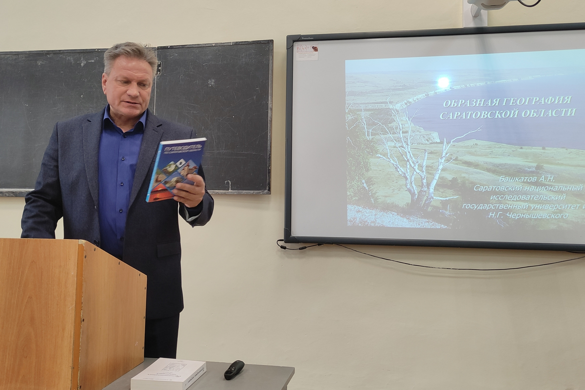 Завершил пленарную сессию доцент кафедры физической географии и ландшафтной экологии Александр Николаевич Башкатов с докладом «Образная география Саратовской области». В своем выступлении Александр Николаевич представил результаты междисциплинарного исследования, в котором географическое пространство региона рассматривается сквозь призму ландшафта, литературы, живописи, топонимики и историко-культурного наследия. Он продемонстрировал, как формируются устойчивые образы территории: от купеческого Саратова до Бурацкого леса на севере области, и как эти образы влияют на восприятие нашего региона ее жителями и гостями. Доклад вызвал живой интерес аудитории, объединив строгий географический анализ с элементами культурологии и краеведения.