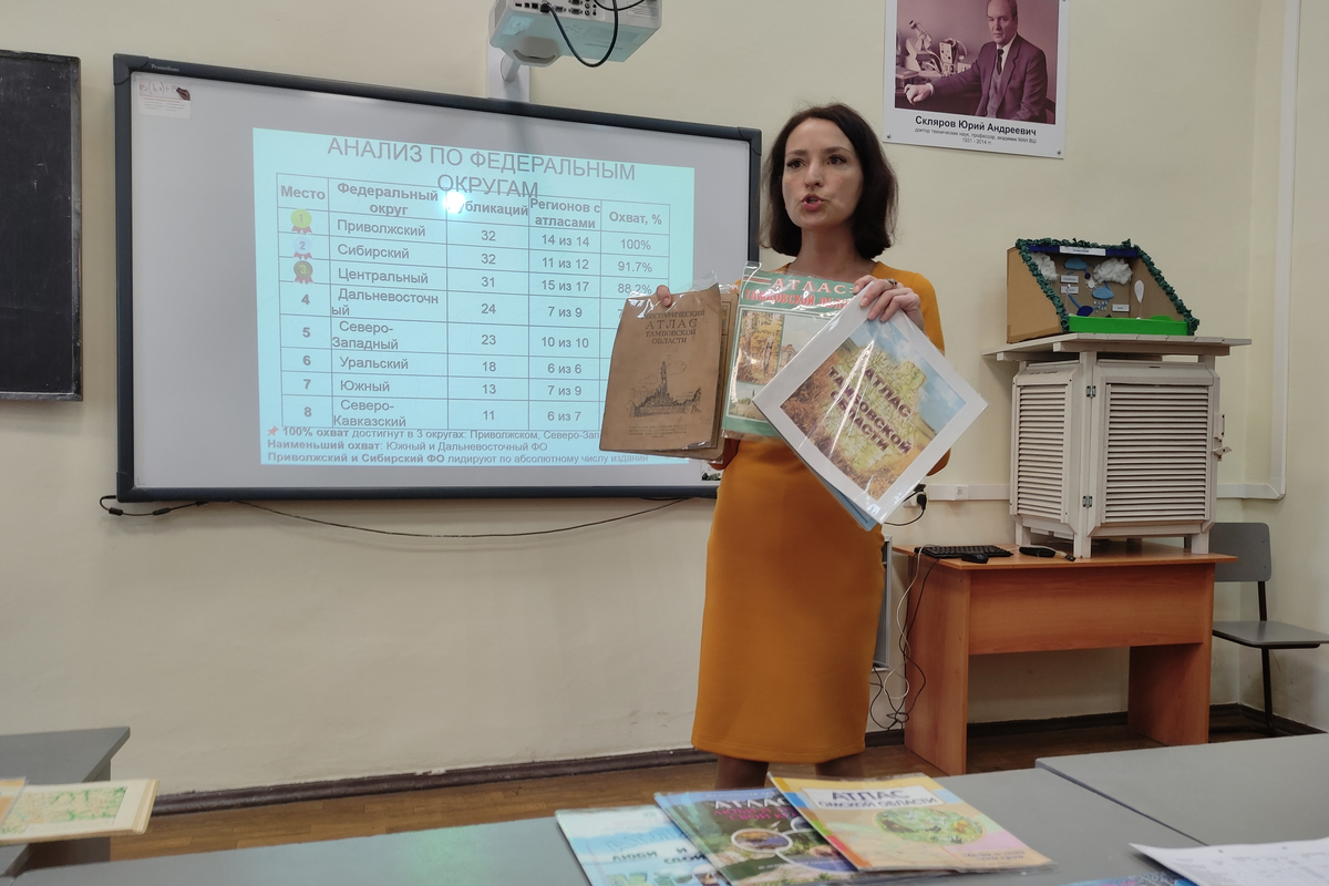 Научная программа конференции охватила широкий спектр направлений — от климатических изменений до демографических процессов. Заведующая кафедрой экономической и социальной географии, доцент Анна Вячеславовна Затонская совместно со студентом П.А. Покрашенко представила исследование «Неравномерность картографической обеспеченности субъектов РФ: количественный и пространственный анализ (на примере тематических атласов)». В своем выступлении Анна Вячеславовна акцентировала внимание на существующем дисбалансе в картографическом изучении регионов страны, показав количественные оценки этого разрыва. Выступление сопровождалось показом коллекции атласов регионов России в ретроспективе, а сам доклад вызвал оживленную дискуссию о необходимости унификации подходов к созданию картографических материалов для каждого региона страны.