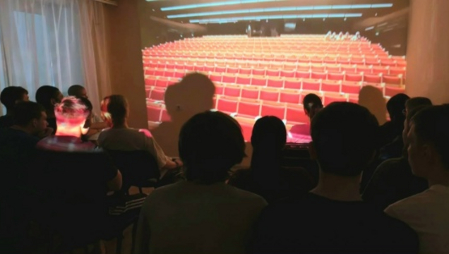 Собравшиеся студенты посмотрели фильм про театры Саратовской области и самые необычные и знаменитые театры мира.