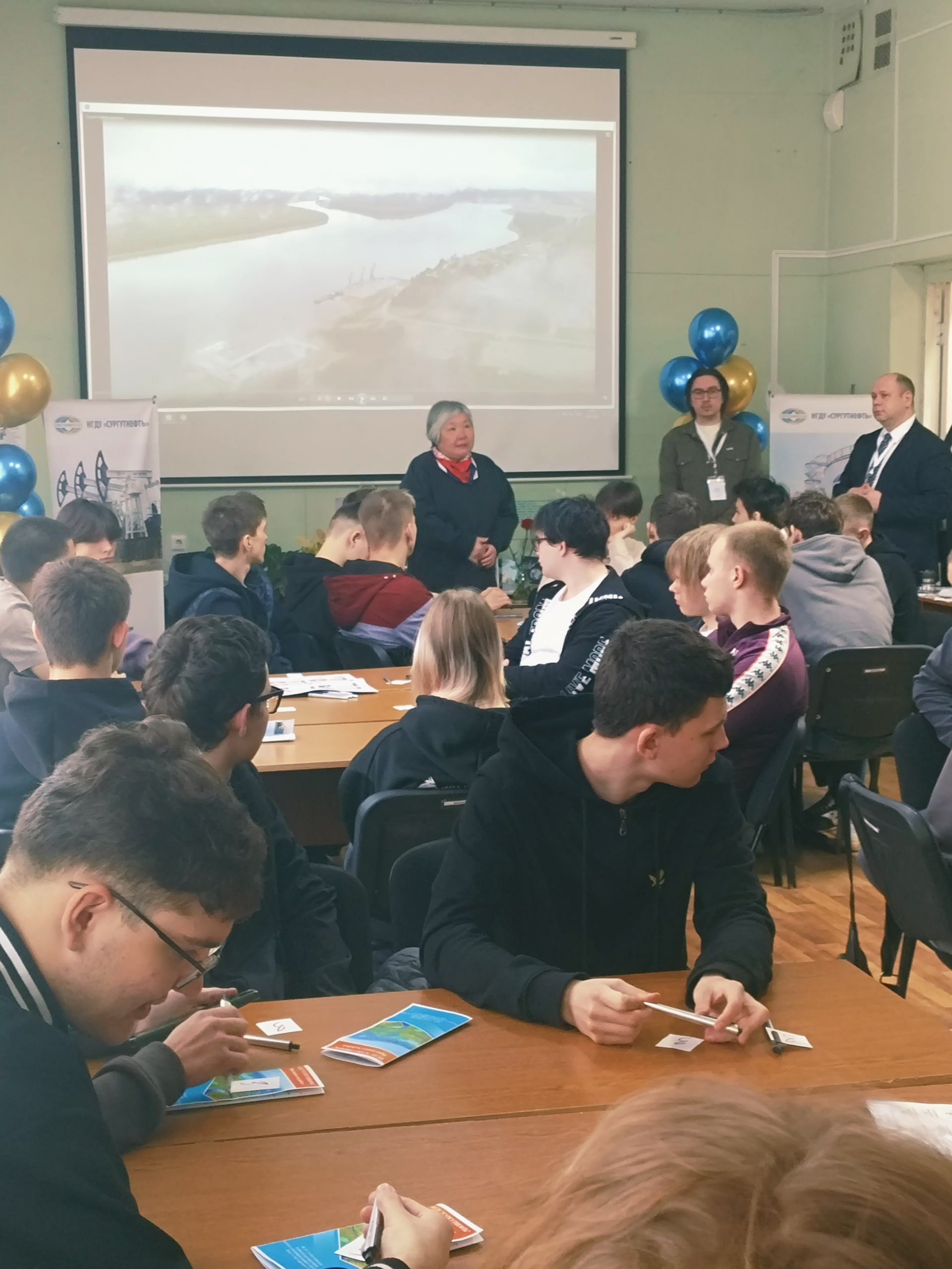 В читальном зале геологического колледжа представители НГДУ «Сургутнефть» организовали увлекательное мероприятие, которое позволило обучающимся продемонстрировать свои знания и практические навыки. В начале встречи, ребят поприветствовали и рассказали о своем предприятии: