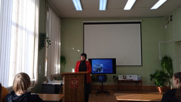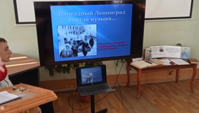 В целях реализации проекта «Творческая гостиная» для студентов первого курса, педагог - организатор геологического колледжа СГУ Е.В. Даниловская, подготовила и провела 27.01.2025г. музыкально-познавательную программу с просмотром презентации «Д. Шостакович симфония №7 «Ленинградская». Данное мероприятие было посвящено памятной дате 82-летию снятия блокады Ленинграда.