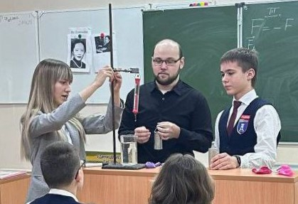В День науки студенты факультета физико-математических и естественно-научных дисциплин Педагогического института СГУ Дарья Гапиенко, Артём Сахипов, Анастасия Соломатина под руководством ответственной за учебно-методическую работу, доцентом кафедры информационных систем и технологий в обучении Ольги Александровны Литвиновой провели в гимназии № 8 г. Энгельса захватывающий мастер-класс по физике для учащихся 8–9 классов.