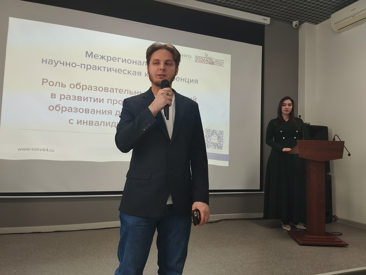 Фисенко Алексей Андреевич, руководитель Центра инклюзивного сопровождения и социальной адаптации студентов, и Чупахина Вероника Николаевна, руководитель Регионального центра добровольчества «Абилимпикс» СГУ, познакомили участников конференции с положительным влиянием инклюзивного добровольчества на адаптацию студентов с инвалидностью.
