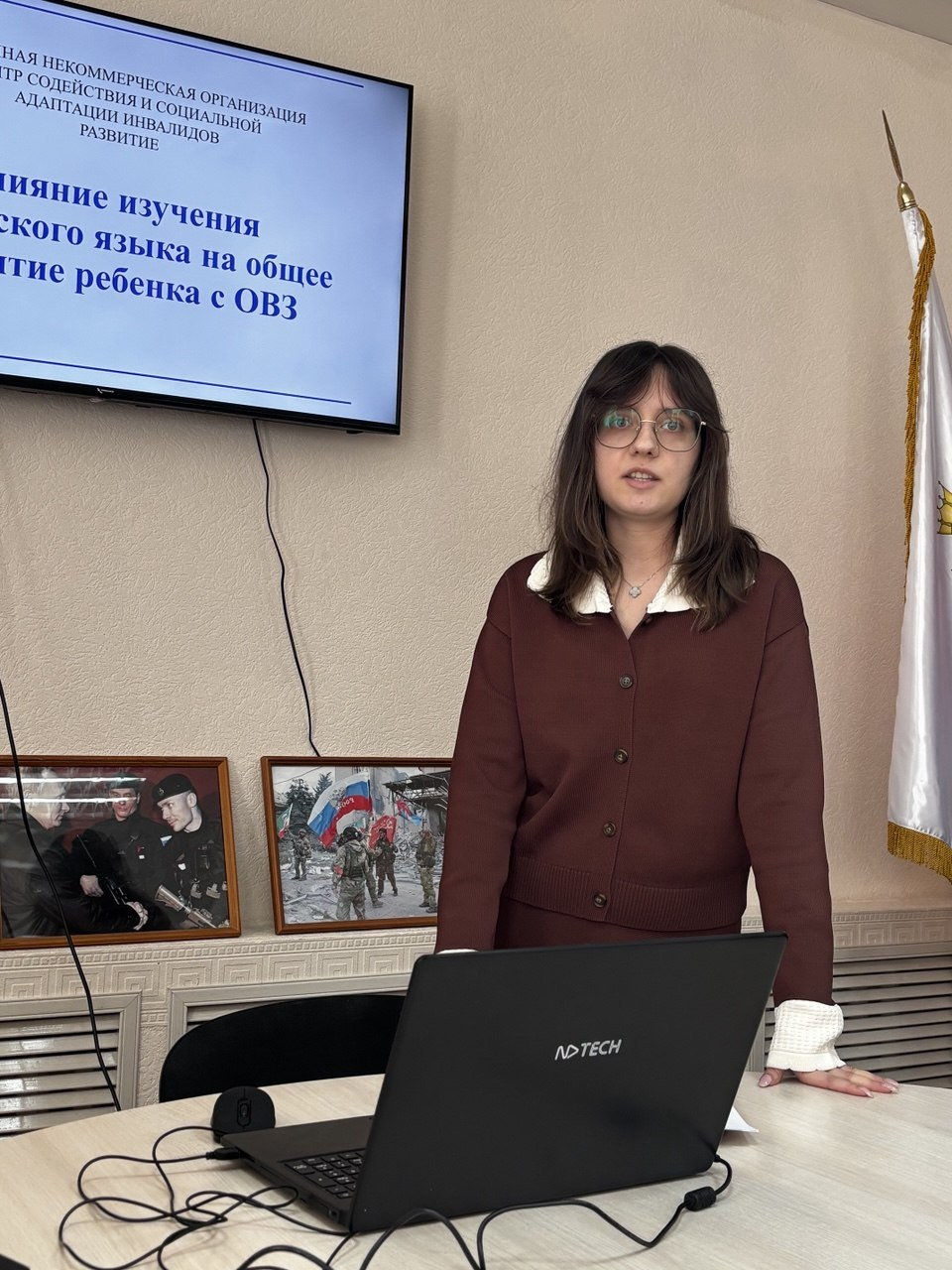 С сообщениями о проведенной работе выступили педагоги-дефектологи АНО ЦССАИ «Развитие», выпускники факультета психолого-педагогического и специального образования: Подкладова Софья, Соколова Валерия, Жалейко Анастасия. Было раскрыто направление по обучению финансовой грамотности детей и молодых людей с ментальными особенностями, а также обсуждался дискуссионный вопрос о целесообразности изучения английского языка детьми и молодыми людьми, имеющими ментальные особенности развития.