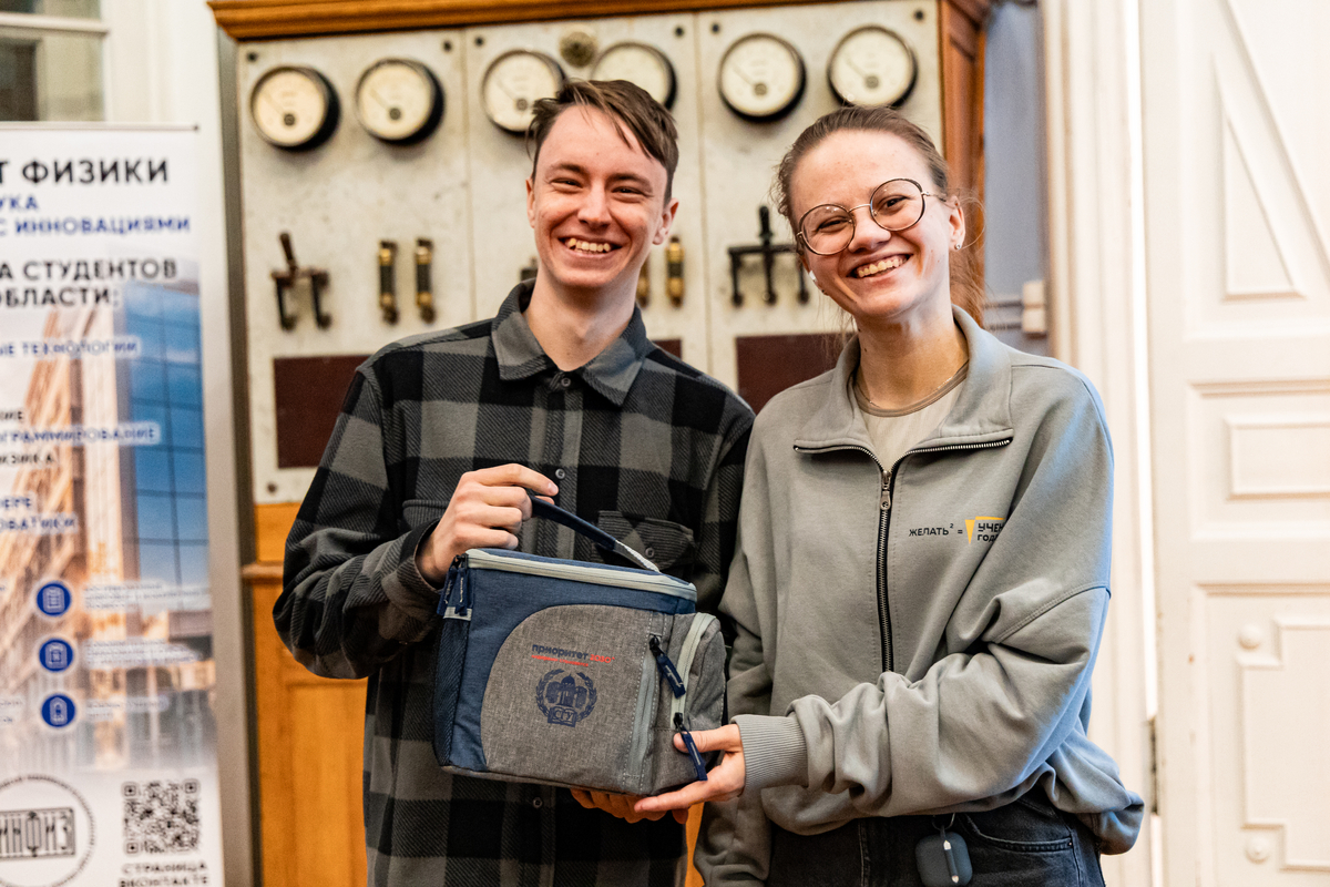 В начале встречи организаторы предложили гостям поддержать научный потенциал Института физики СГУ. К грантовой программе развития может присоединиться каждый. Пожертвования принимаются на платформе Legacy Endowment Services, а сумму каждый определяет самостоятельно. После лекции среди дарителей были разыграны подарки. Их обладателями стали студенты СГУ Максим Чибезов (Институт физики) и Владимира Королёва (ИФиЖ), а также гостья университета Анна Родина.