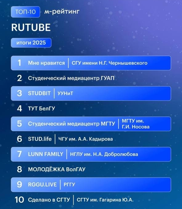 Телепроект СГУ «Мне нравится» занял первое место в годовом рейтинге медийной активности на Rutube, который подготовил агрегатор студенческих СМИ «НОС».