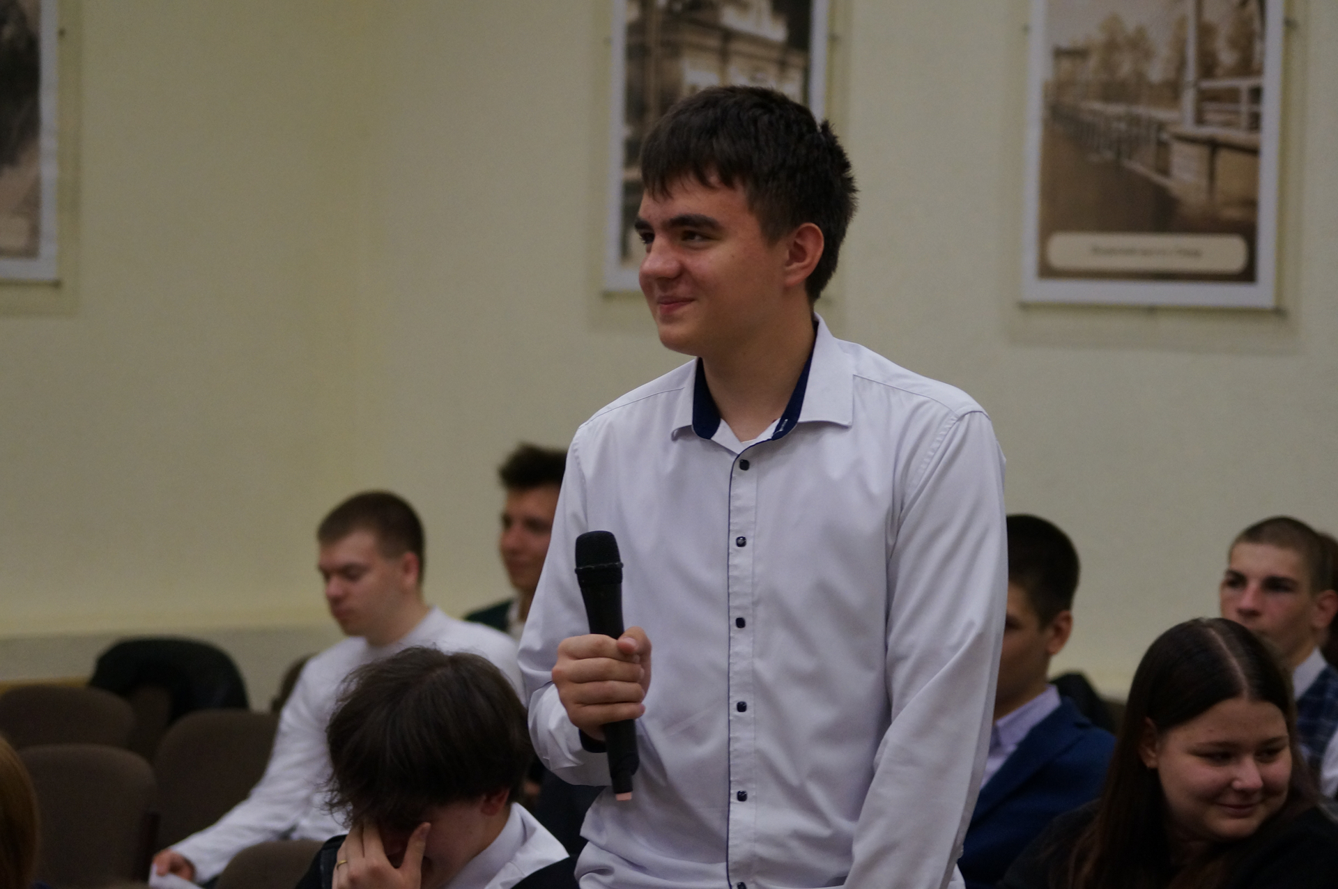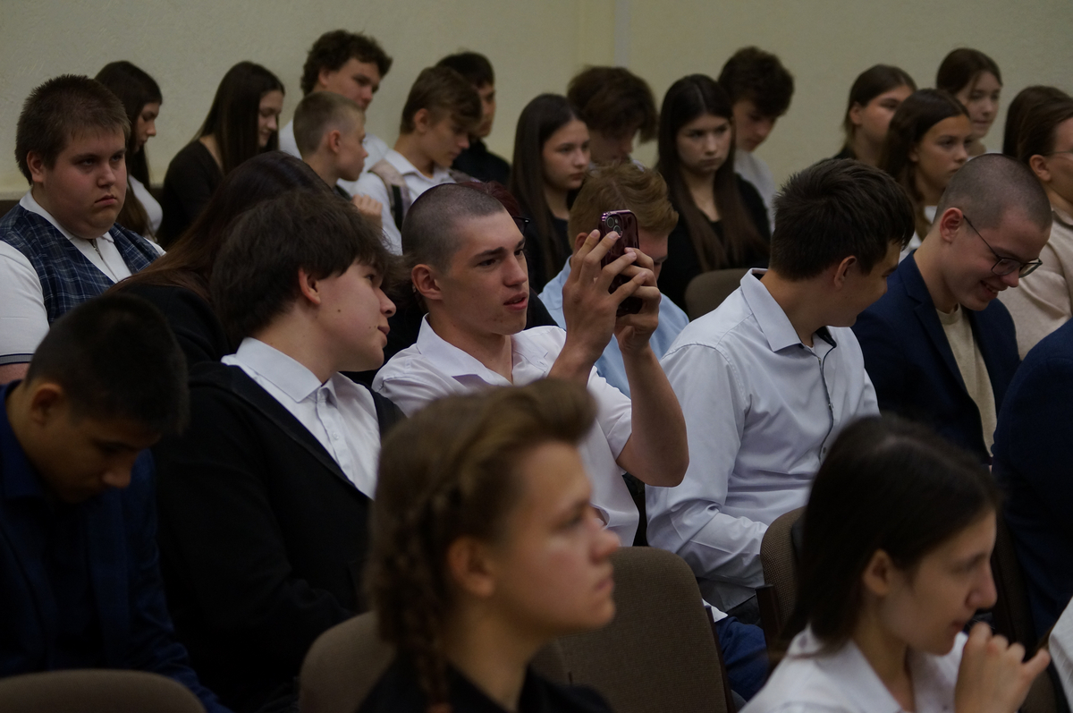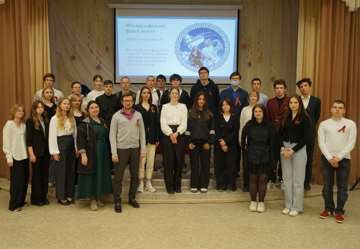 Первокурсники философского факультета также провели мастер-класс в формате семинара, наглядно продемонстрировав учащимся, какой проектной работой им предстоит заниматься во время обучения в вузе. Мероприятие было приурочено к 80-летию Великой Победы.
