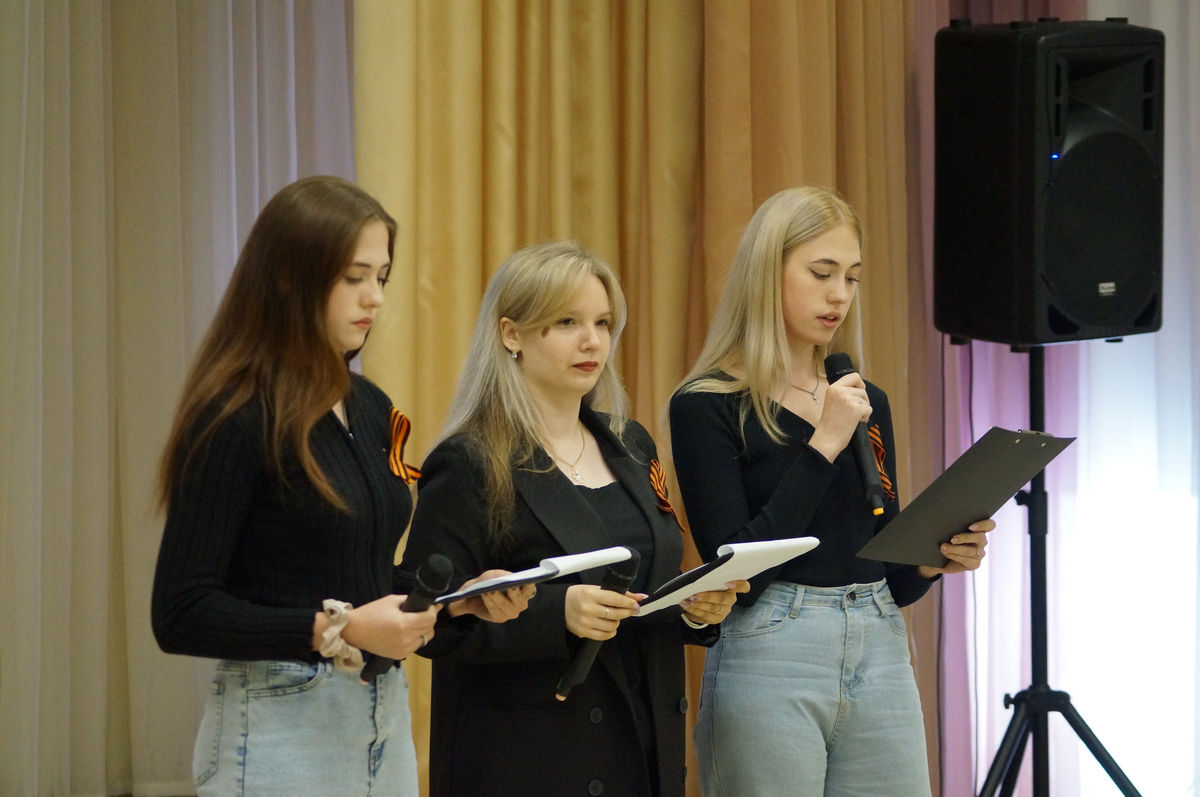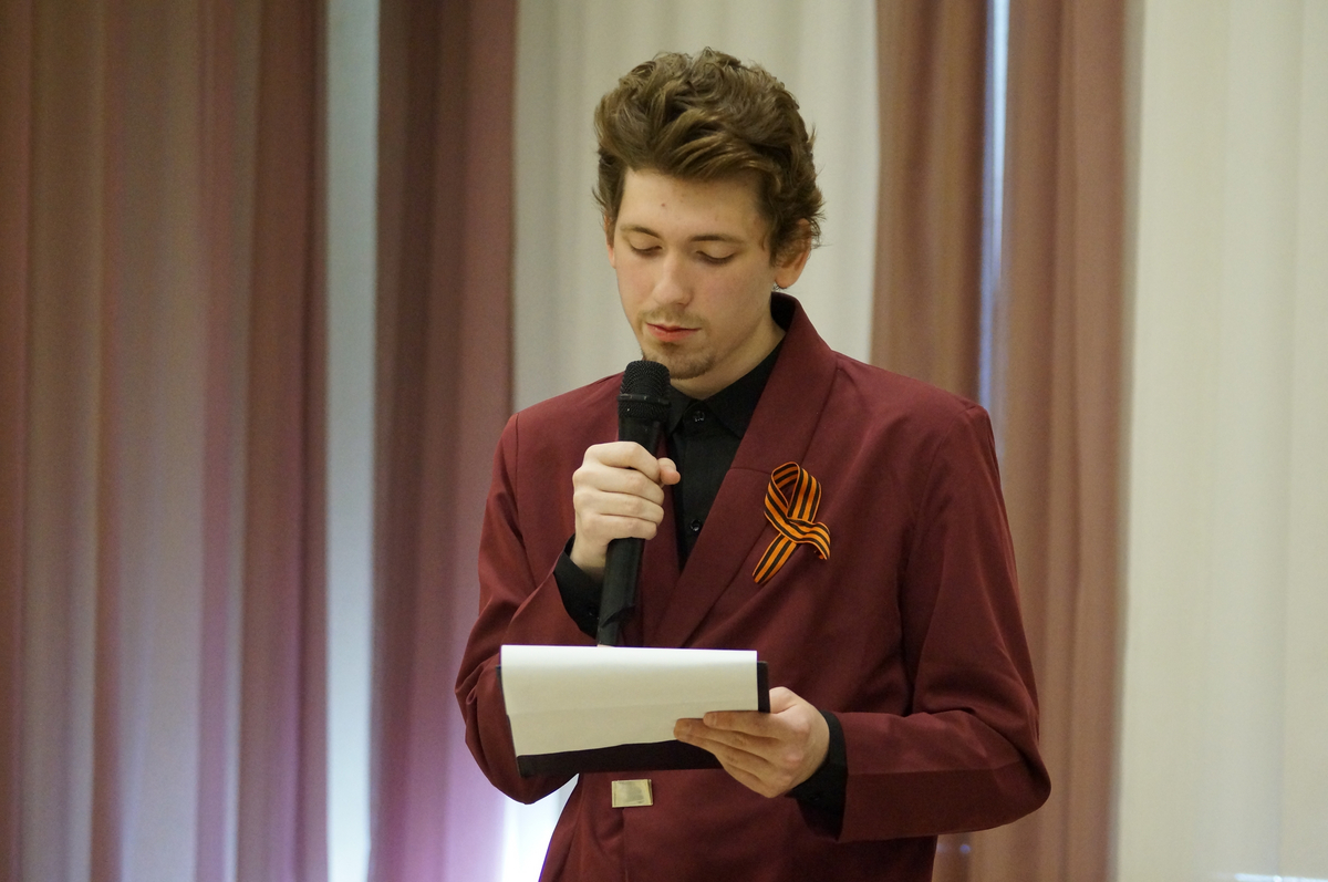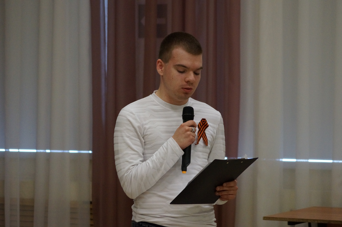 Владислав Варгин, обращаясь к сюжетам фильма «А зори здесь тихие», поделился размышлением о женском подвиге на войне, о той смелости, которые проявляли еще совсем молодые девушки, сражаясь с врагом и защищая родную землю ценой собственной жизни. Показывая кадры кинокартины «Судьба человека», Сергей Никифоров обратил внимание учащихся на мужество русского солдата перед лицом смерти, его преданность Родине, долгу, своим идеалам, на несокрушимость воли и умение сохранять лицо, честь, достоинство до конца. Техническую помощь выступающим оказывали их одногруппники Данила Назаркин и Захар Брянский.