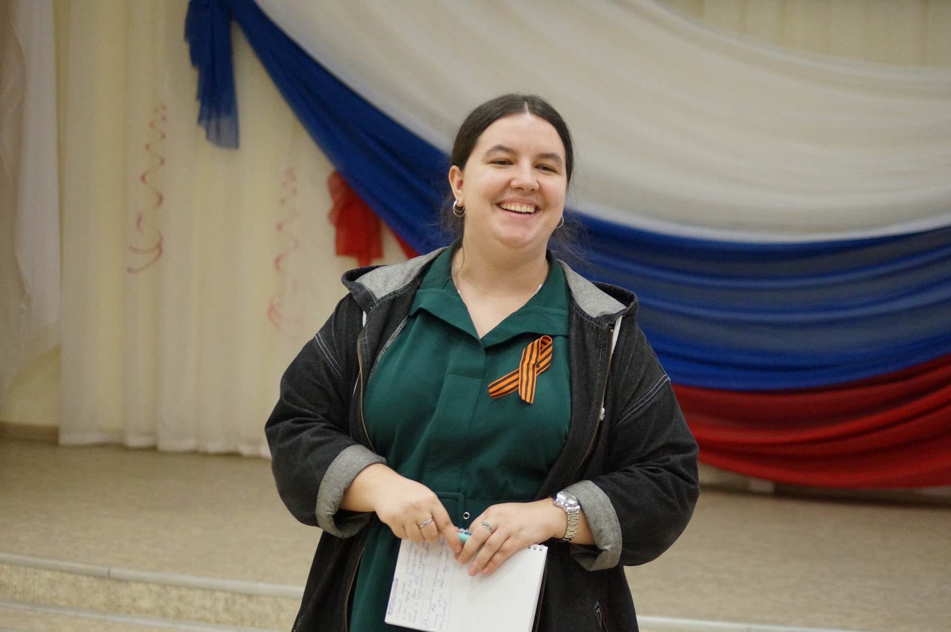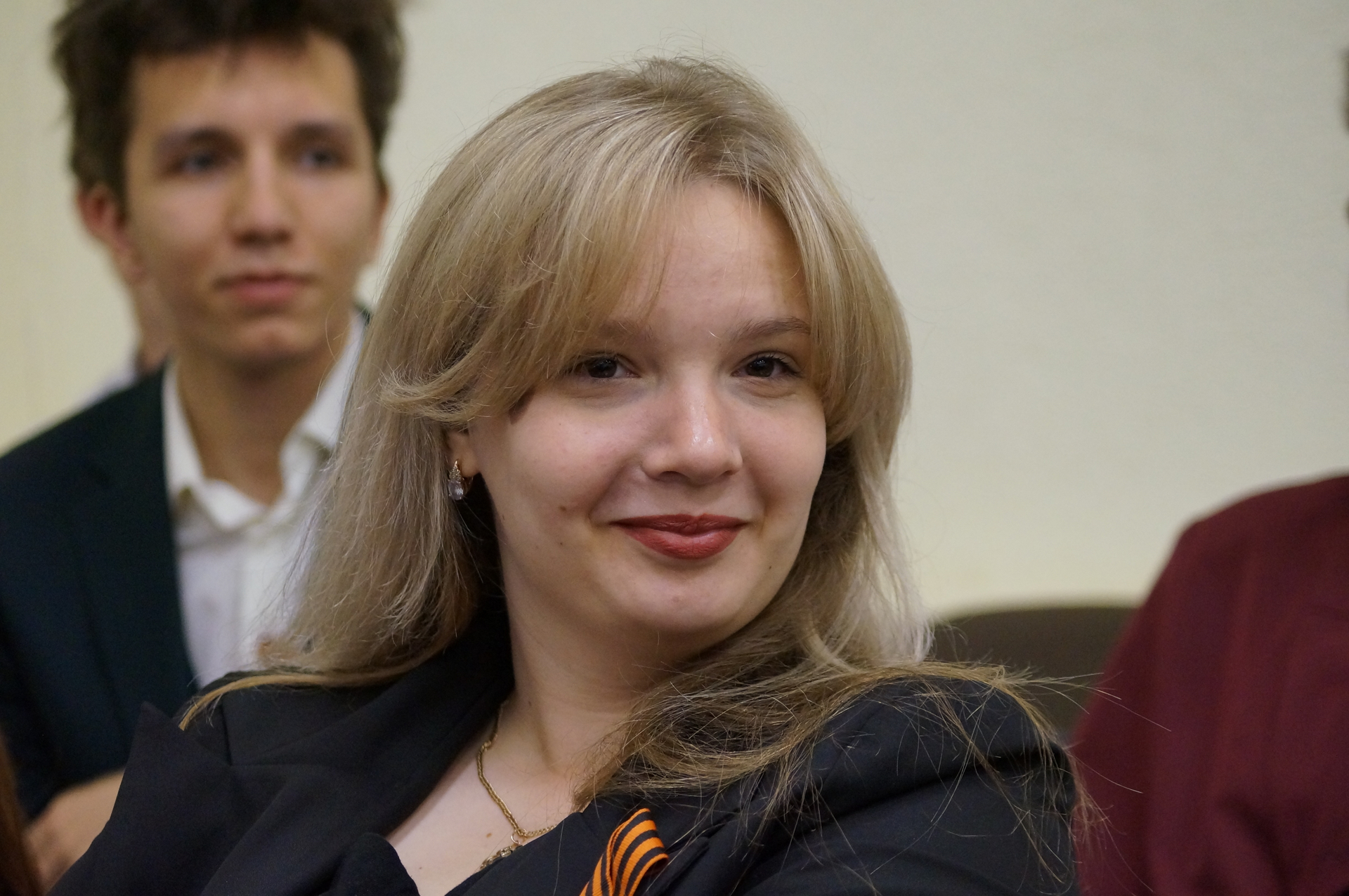 От лица молодежного актива философского факультета к собравшимся обратилась председатель студенческого совета Е.Д. Штокгамер. Елена Дмитриевна представила ребятам обзор внеаудиторной деятельности, занимаясь которой они смогут реализовать лидерские, интеллектуальные, творческие качества, обрести новых друзей и получить бесценный опыт, запомнившийся на всю жизнь. Одним из таких мероприятий, объединивших первокурсников теологов и религиоведов, стал проект «Человек, общество и культура в пространстве теоанализа», участники которого приготовили в этот день специальную программу, посвященную 80-летию Великой Победы.