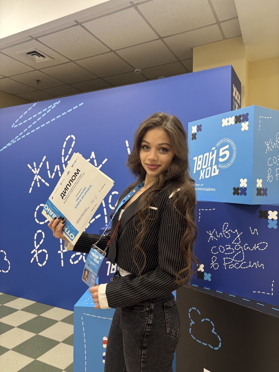 В качестве победителя Алина приняла участие в Всероссийском студенческом форуме проекта «Твой ход» в Москве, где стала участником образовательных интенсивов, стратегических сессий и встреч с экспертами в сфере молодёжной политики, образования и цифровых технологий. Форум стал площадкой для обмена опытом с активными студентами из разных регионов страны и дал новый импульс для дальнейшего развития.