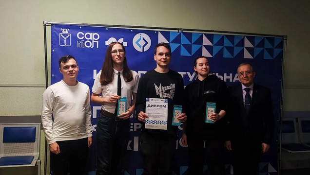 28 февраля студенты Института физики СГУ Иван Мягков, Сергей Бурмистров и Надежда Караваева заняли 1 место на региональном этапе соревнований Интеллектуальной олимпиады Приволжского федерального округа в направлении «Конкурс инженерных команд».