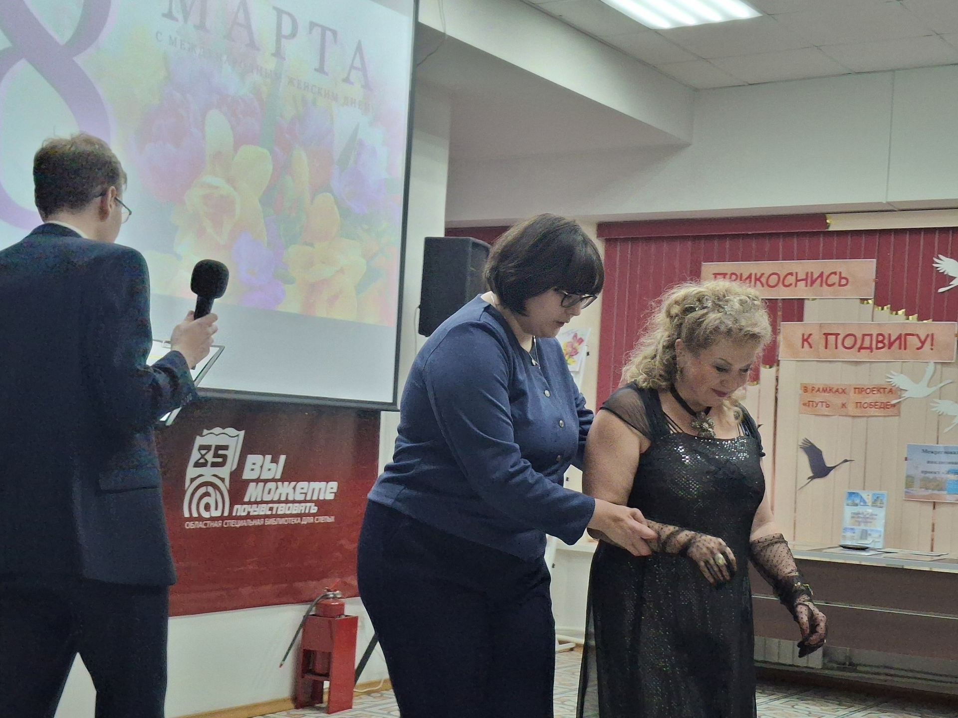 Добровольцы Регионального Центра Добровольчества «Абилимпикс» приняли участие в сопровождении празднично‑литературного концерта, посвяященного Международному женскому дню. Концерт состоялся в Саратовской областной специальной библиотеке для слепых.