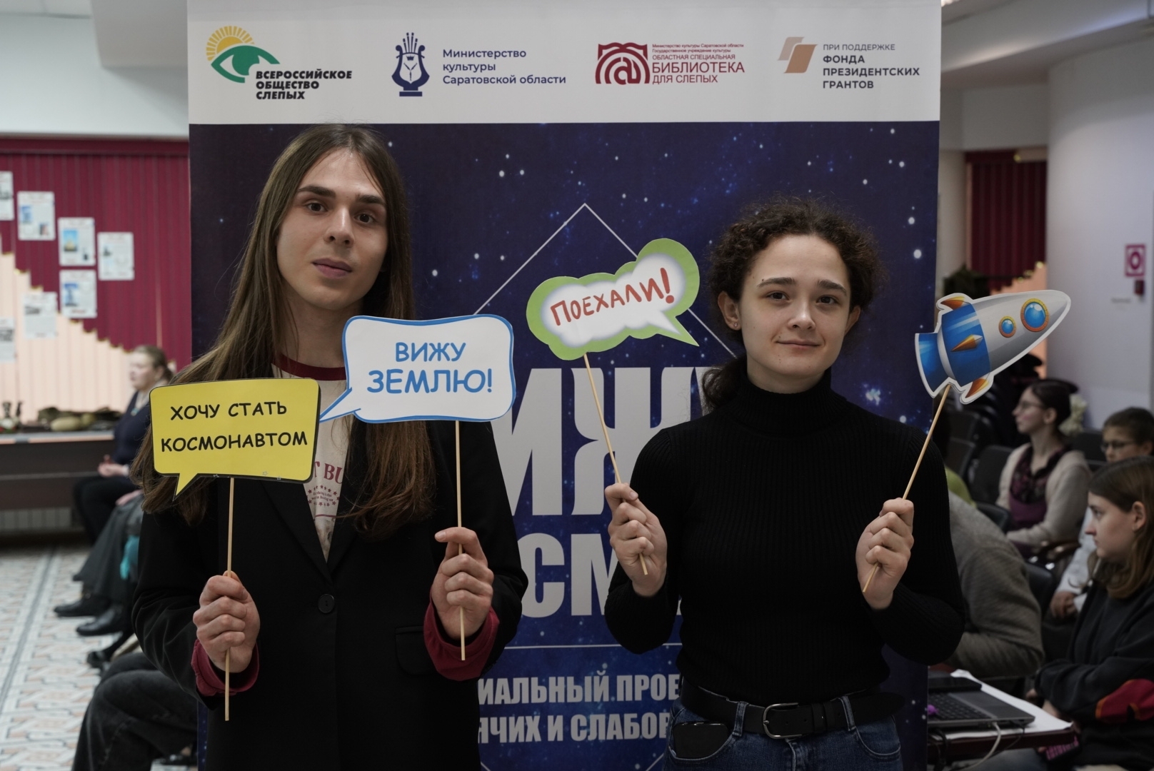 Ко Дню защитника Отечества в областной специальной библиотеке для слепых прошёл праздничный концерт. Добровольцы Регионального центра добровольчества «Абилимпикс» помогли организовать мероприятие и сопровождали незрячих читателей: встречали гостей и помогали им на протяжении всего концерта.