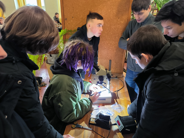 Обучающимся было предложено найти неисправность в монтаже печатной платы, с чем они успешно справились.