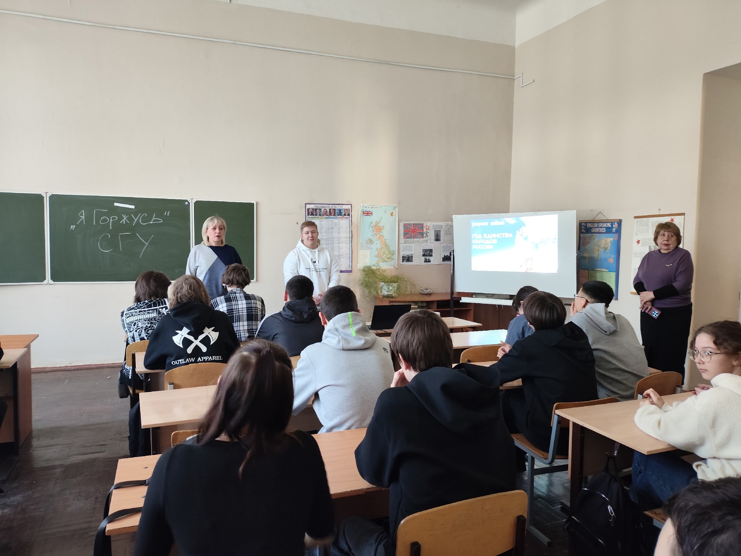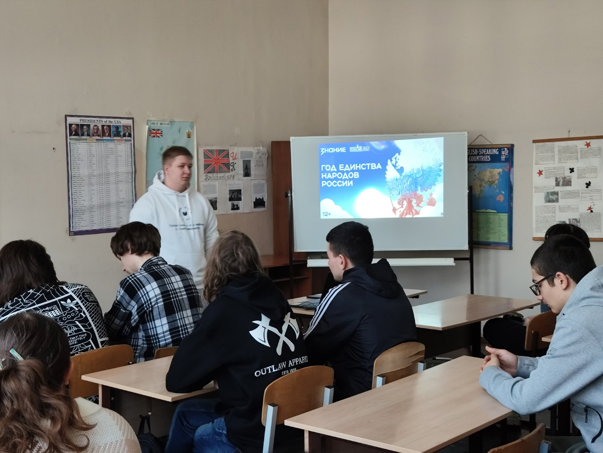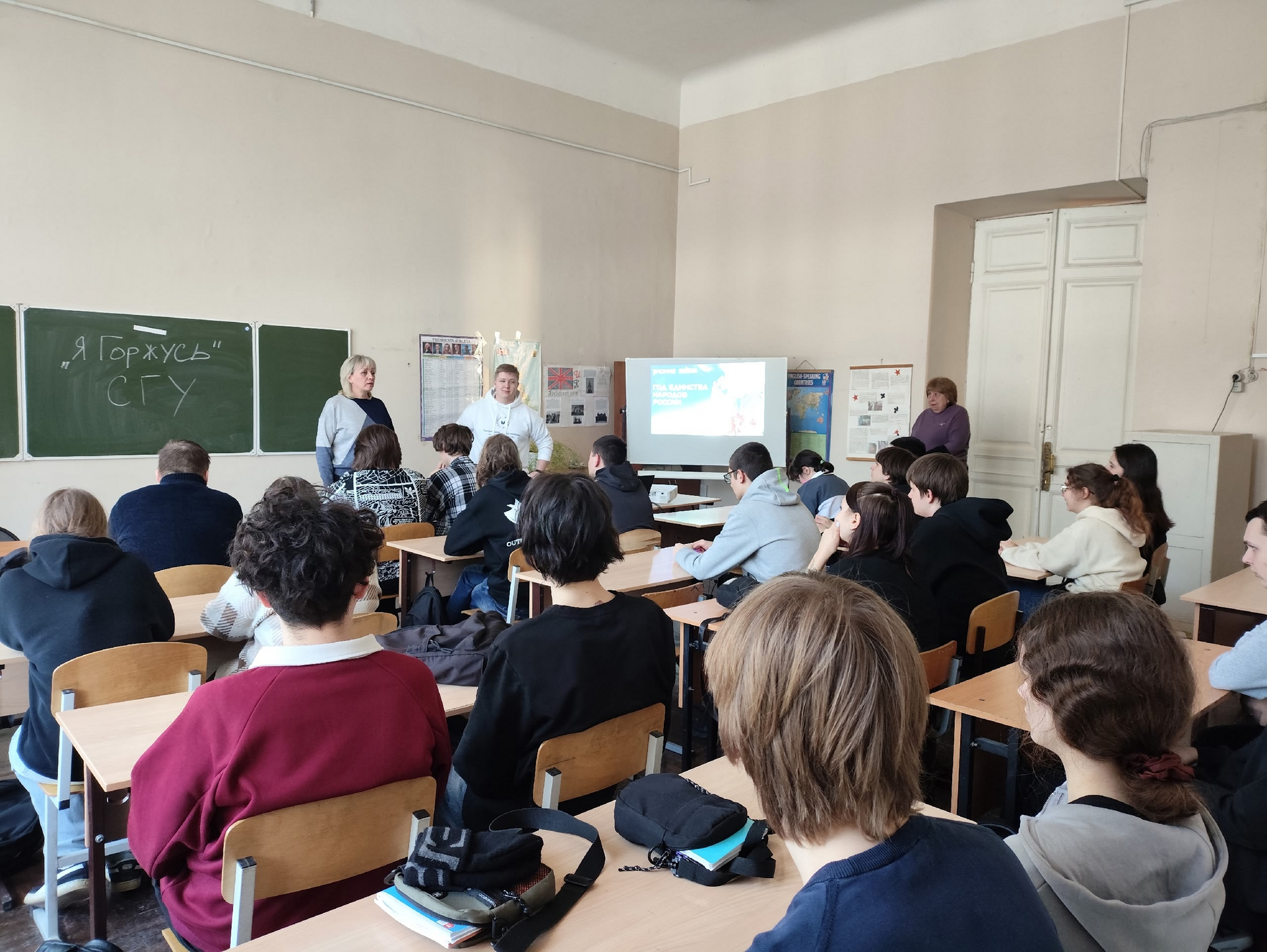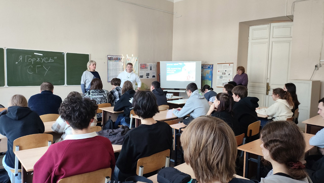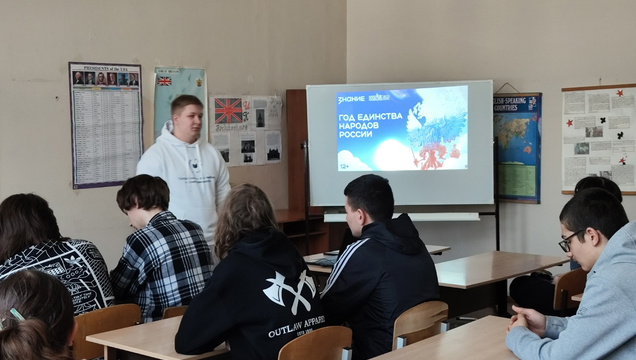 12 марта 2026 года для студентов групп 9261, 9262 Колледжа радиоэлектроники имени П. Н. Яблочкова сотрудник патриотического клуба «Я Горжусь» СГУ Осипов Федор провел квиз посвящённый Году единства народов России.