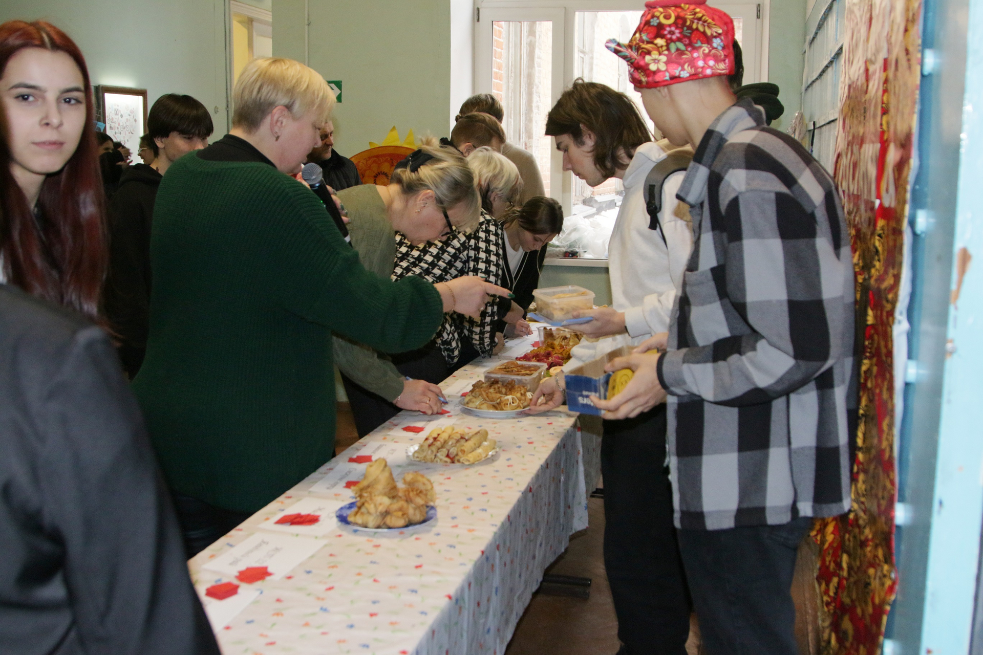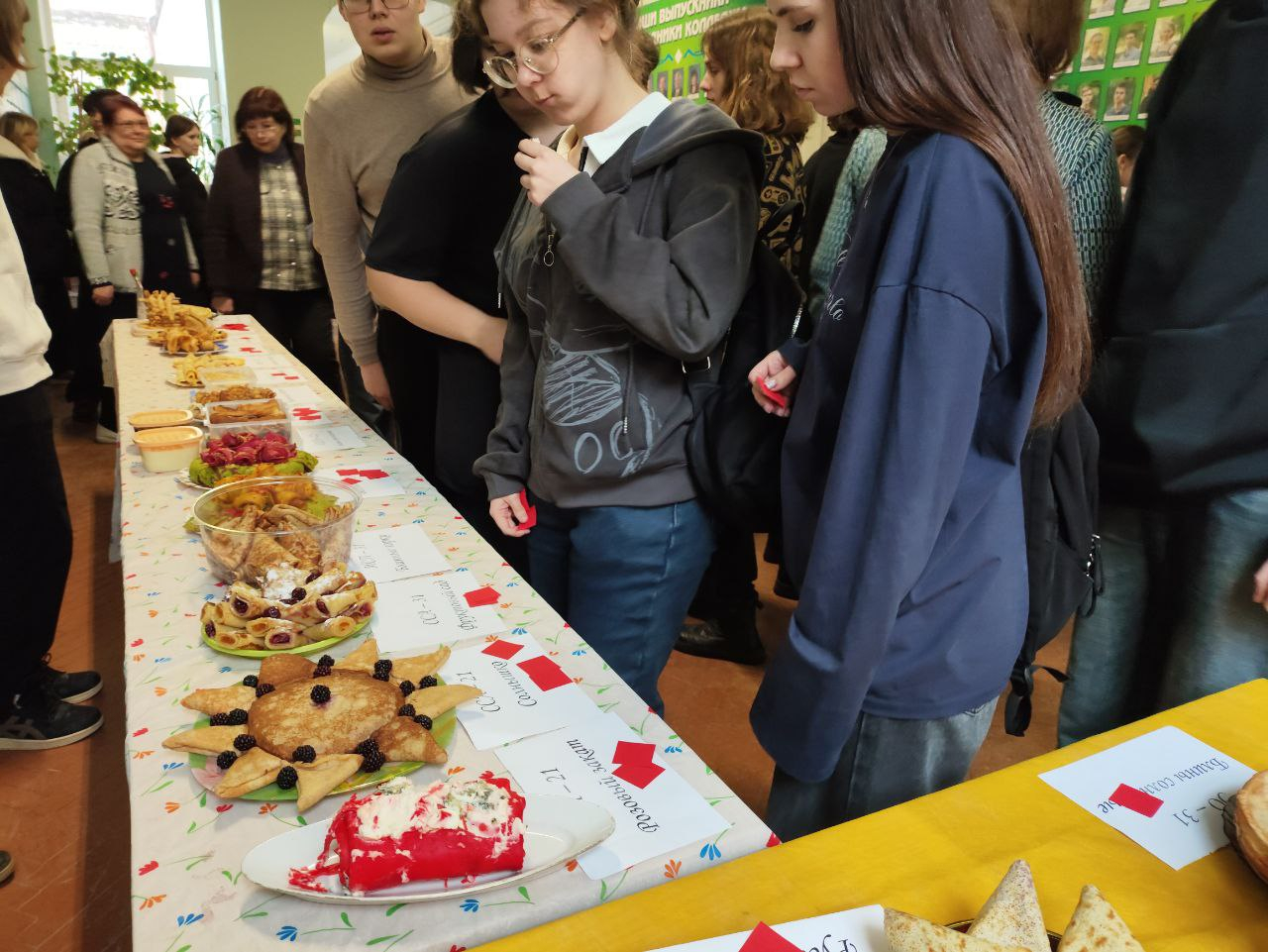 Одновременно проходил конкурс на самые аппетитные, румяные и креативно оформленные блины: студенты приносили свои шедевры, придумывали им интересные названия и представляли их на зрительское голосование. От некоторых групп приносили несколько вариантов подачи блинов по самым известным, или наоборот, секретным семейным рецептам. А все присутствующие отдавали свои голоса за самое понравившееся блюдо.