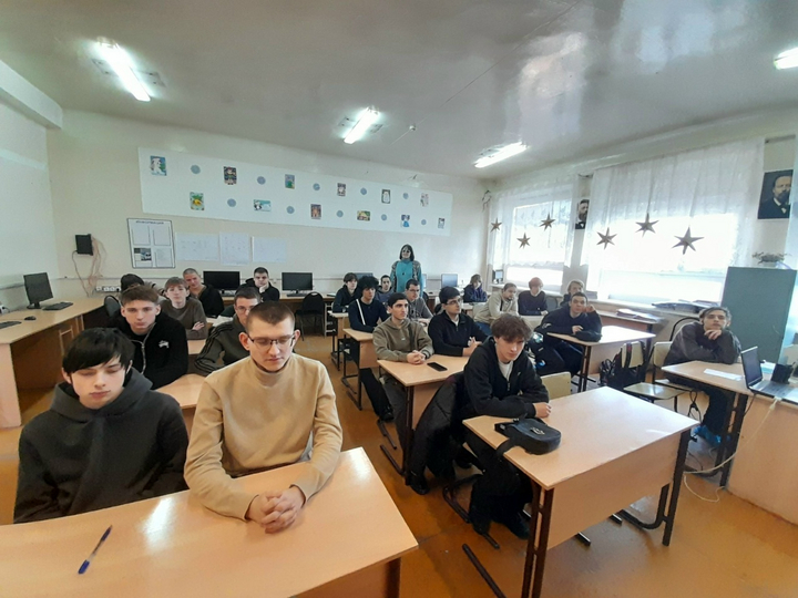 22 января 2026 года в Колледже радиоэлектроники имени П.Н. Яблочкова педагог-психолог Щетинина Н.А. провела в группах 1302 (классный руководитель Вахлиш Е.В.) и 1201 (классный руководитель Машарова Е.А.) профориентационное занятие «Россия – мои горизонты» в рамках проекта «Билет в будущее» - «Устраиваемся на работу».
