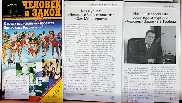 «Человек и закон» – ежемесячный научно-популярный журнал общественно-политической, правовой и публицистической направленности, основной задачей которого на протяжении многих десятилетий является правовое просвещение граждан. Журнал был создан в ноябре 1970 года Министерством юстиции СССР и начал издаваться с января 1971 года тиражом 730000 экземпляров. Через несколько лет тираж составил 11 миллионов экземпляров, и журнал был внесён в Книгу рекордов Гиннеса. В редакционный совет журнала входили известные юристы, политики, общественные деятели: Сергей Степашин, Сергей Шахрай, Павел Крашенинников, Анатолий Кучерена, Павел Астахов и другие. Главными редакторами журнала в разные годы были: С. А. Высоцкий, А. Д. Самойленков, В. В. Гриб.